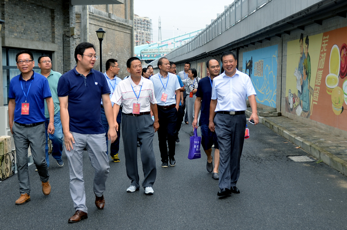 卞總向調研團匯報了園區(qū)的歷史傳承、改造歷程及目前的基本發(fā)展情況。帶領參觀了益新面粉大樓及大礱坊歷史文化長廊,作為蕪湖工業(yè)象征的“兩個半煙囪”的僅存見證,百年益新面粉大樓在經(jīng)過修整后也再次踏上新的征程。而在今年8月正式竣工的大礱坊歷史文化長廊,利用墻繪的方式,生動的記錄了礱的誕生以及大礱坊的工業(yè)歷史變遷,長達450米的手工墻繪,目前已成為蕪湖的一張文化名片。